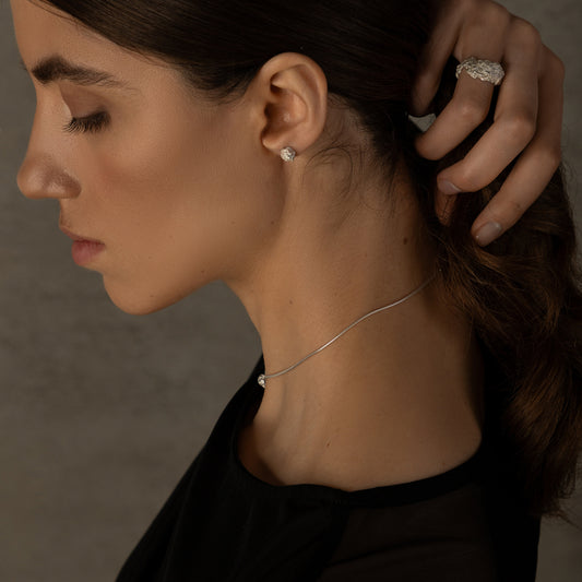 Artisanal Silver Stud Earrings | Sculptural Crumpled Ball | Modern Minimalist Jewelry