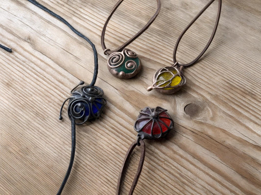 Amber Stained Glass Butterfly Necklace – Handmade Nature Inspired Pendant