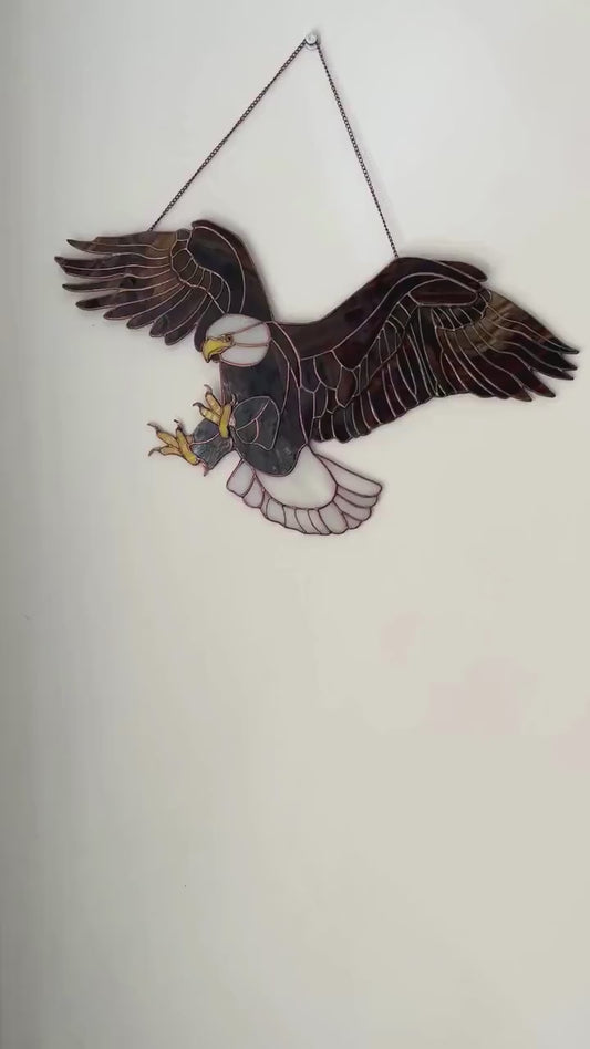 American Eagle Glass Suncatcher – Patriotic Window Hanging, 4th of July Decor, Veteran Gift